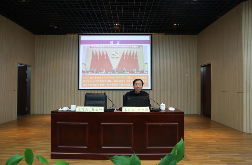 隨后,常州市委黨校理論研究中心主任康永超教授應(yīng)邀為全體黨員和領(lǐng)導干部作了《開啟全面從嚴治黨新征程》的宣講,他通過對“六中全會的總體定位與鮮明特點”、“全會對習近平核心地位的明確”、“《準則》和《條例》的基本要求”這三個問題的解讀,幫助黨員和領(lǐng)導干部進一步理解全面從嚴治黨的重要性和必要性,理解《關(guān)于新形勢下黨內(nèi)政治生活的若干準則》和《中國共產(chǎn)黨黨內(nèi)監(jiān)督條例》的基本要求。
